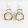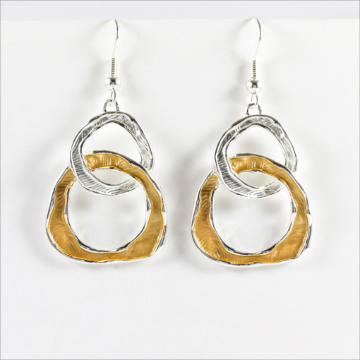 GAEL are a fabulous two-tone circle dangle earrings, It has three layers of plating: silver, gold and a third layer that keeps it from changing color or tarnishing. Those chic look earrings has a youthful and joyful look. The organic feeling finish with the matte gold color gives those original earrings an amazing statement look which can be use for casual or dressy needs.