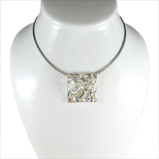 GRACE, Its a unique high quality Necklace Design, 3 tone effect. It is made with a unique technique of plating, has three layers of plating: Shiny & matte silver, oxidized silver, matte gold and a third layer that keeps it from changing color or tarnishing. The necklace is made out of 8 stainless steel strings coated with gray silicone, both comes together to a perfect WOW look.